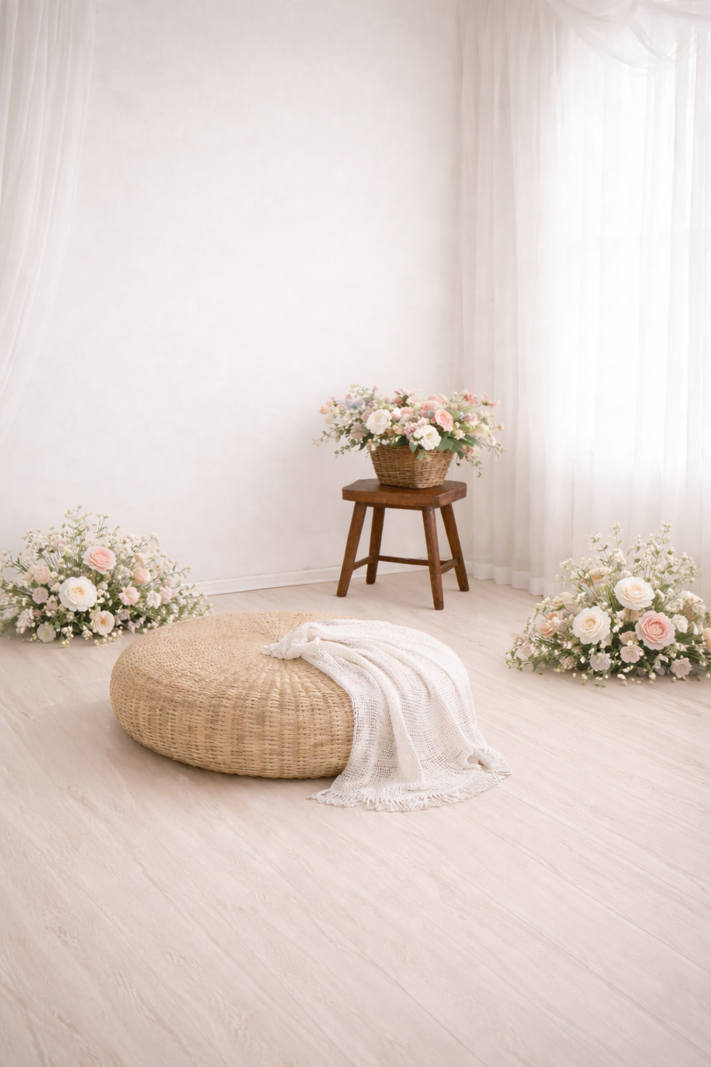 I’ve created the sweetest, neutral studio set designed to keep the focus exactly where it belongs — on you and your babies. Timeless textures, delicate florals, and soft natural light for images that will never go out of style.